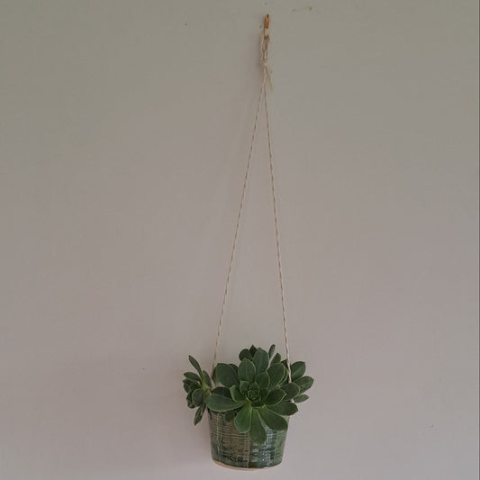 Hanging Planter #2 - Kelp Green Speckled Stoneware